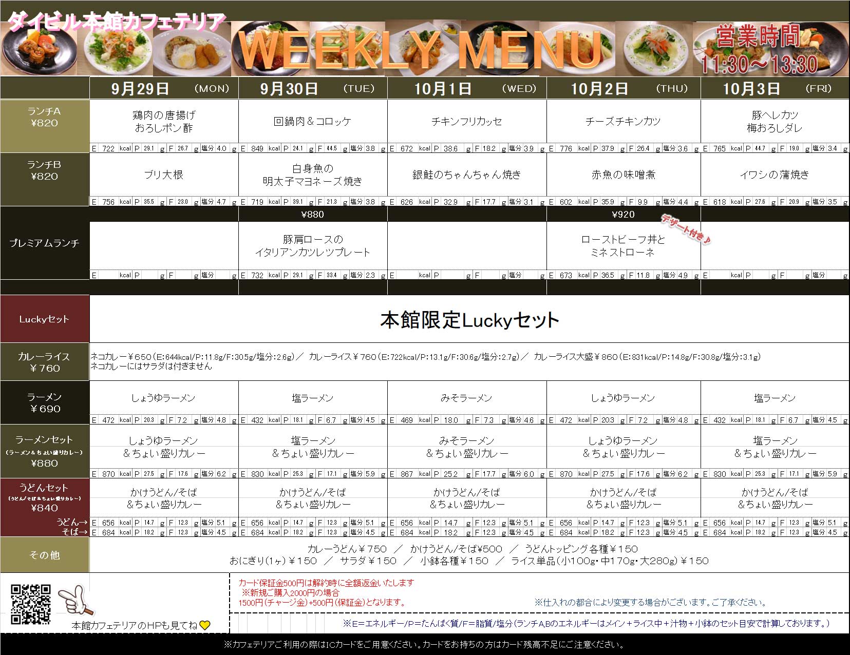 ※当店の姉妹店、中之島ダイビルカフェテリア・新ダイビルカフェテリアのICカードもご利用いただけます。