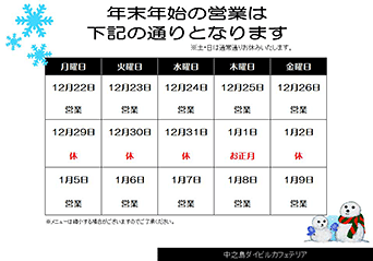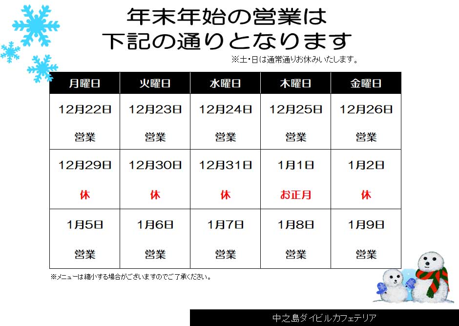本年も中之島ダイビルカフェテリアをご利用いただき、誠にありがとうございました。