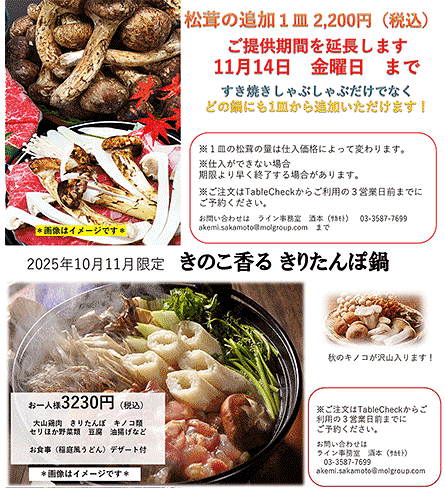 ご好評にお応えし、松茸の提供期間を延長しました!