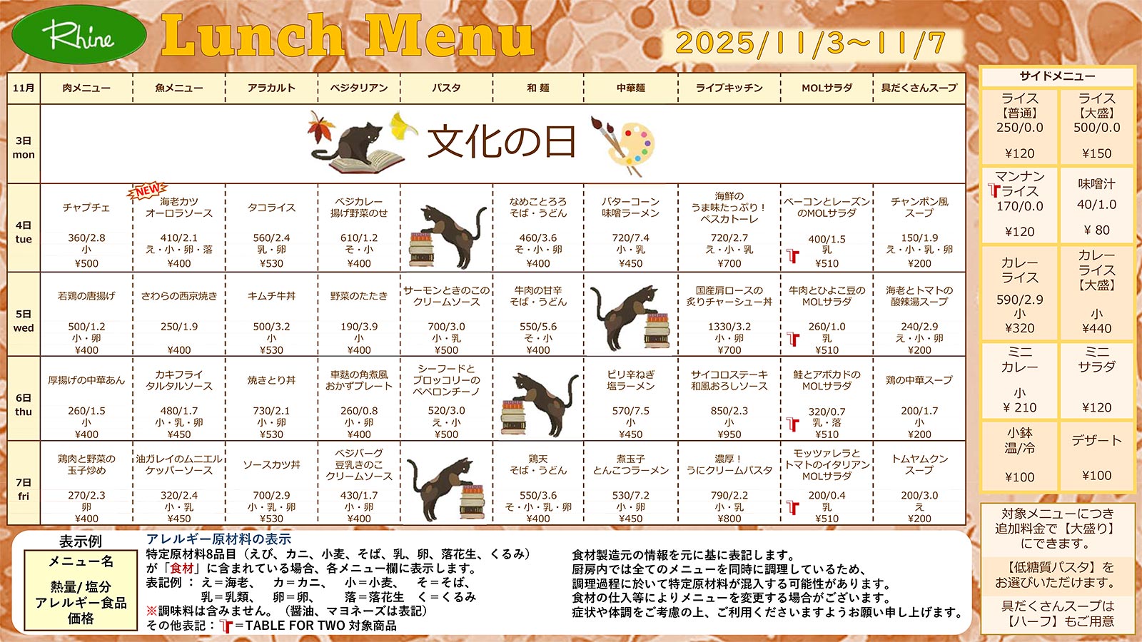今週のランチメニュー 11/4~11/7 (11:30~13:30)
