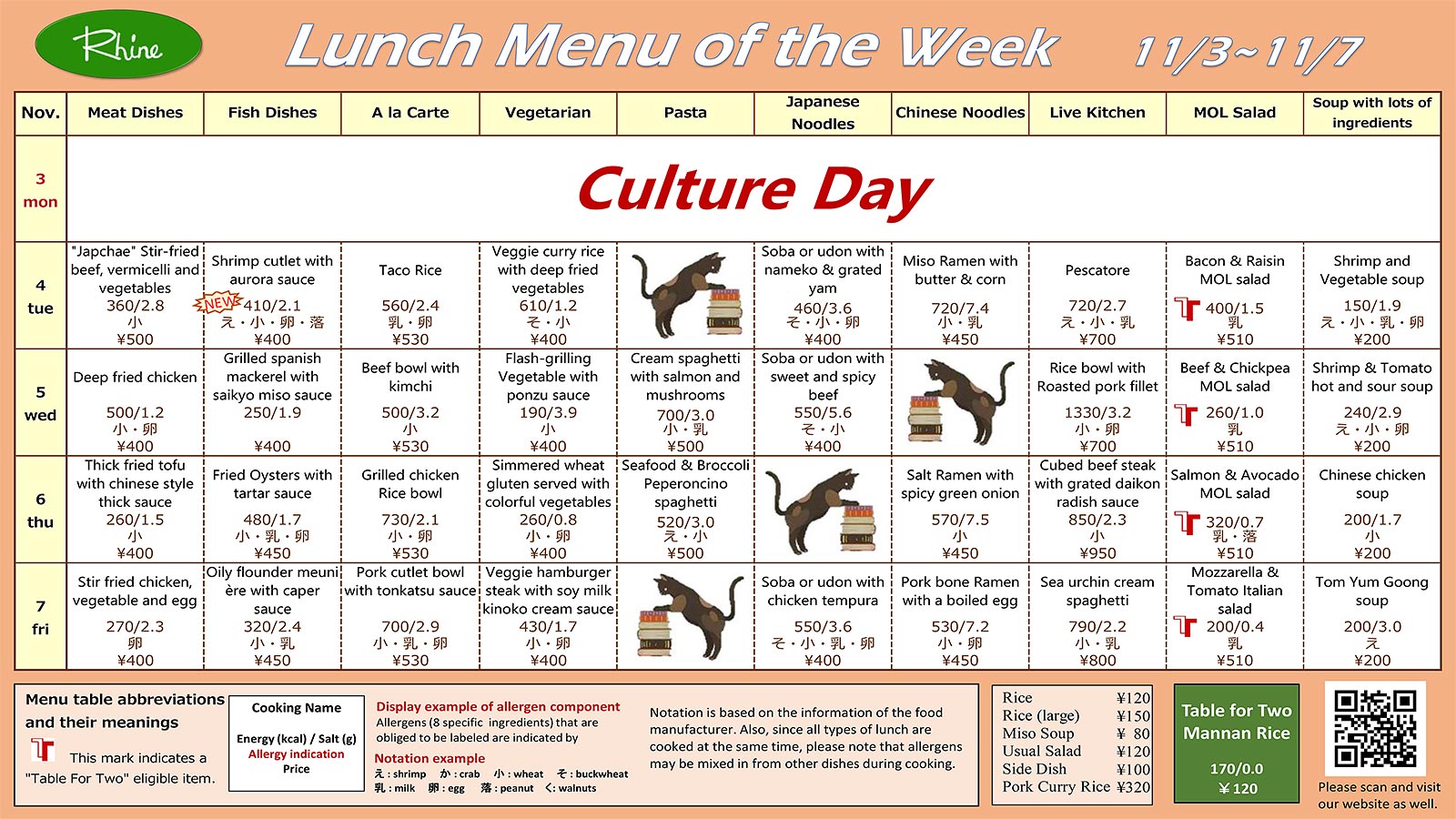 Weekly Lunch Menu 11/4~11/7 (11:30~13:30)