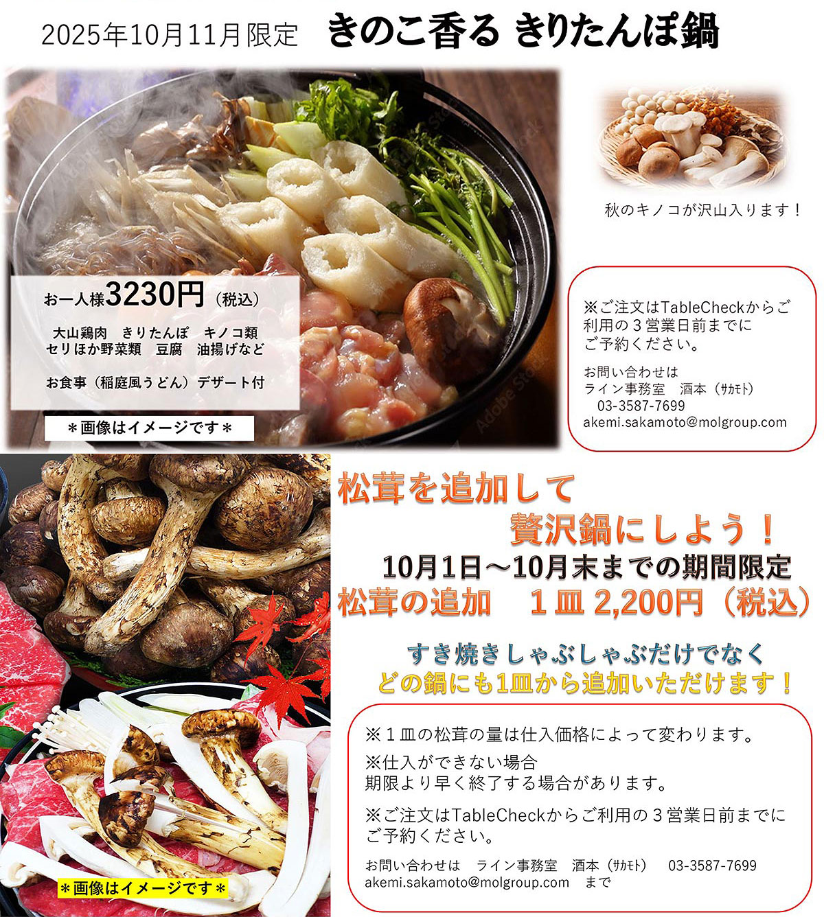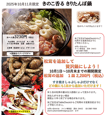 今年の秋も、10月1日より松茸の追加提供を開始いたします。