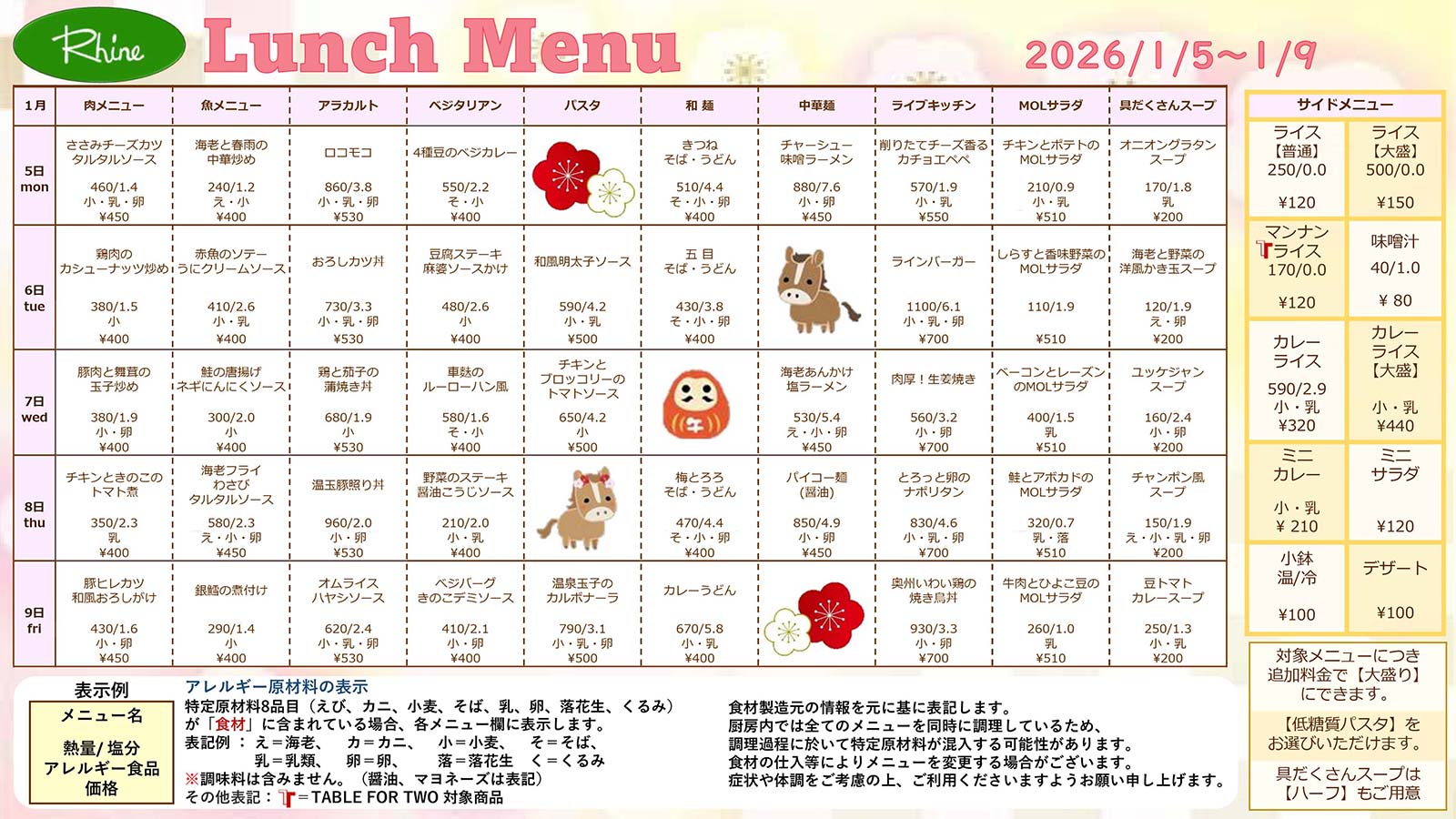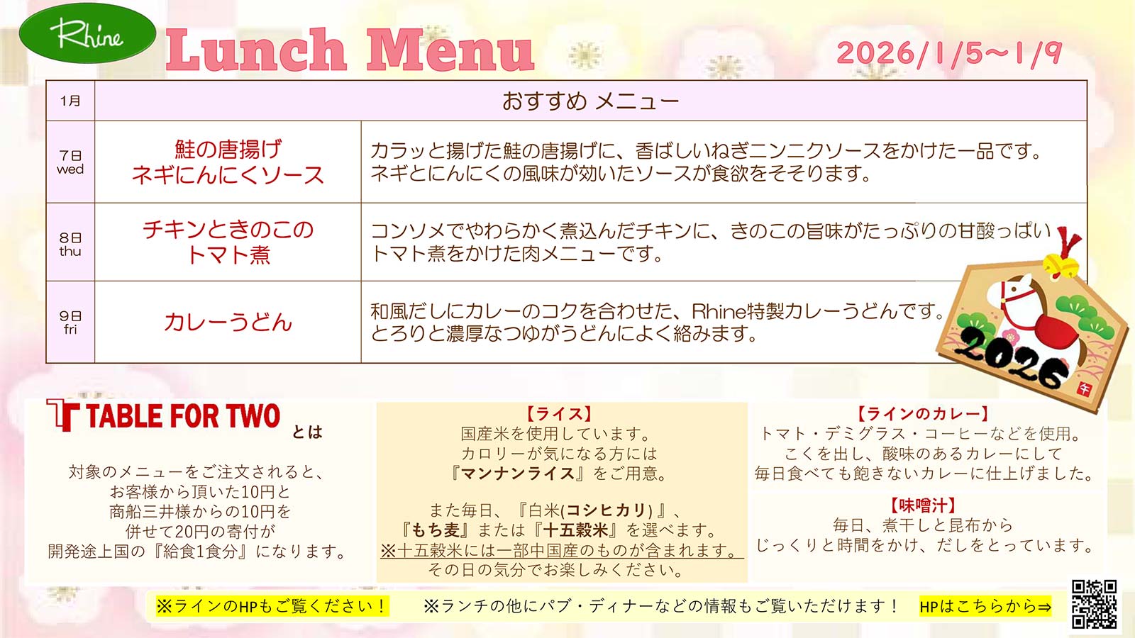 今週のランチメニュー 1/5~1/9 (11:30~13:30)