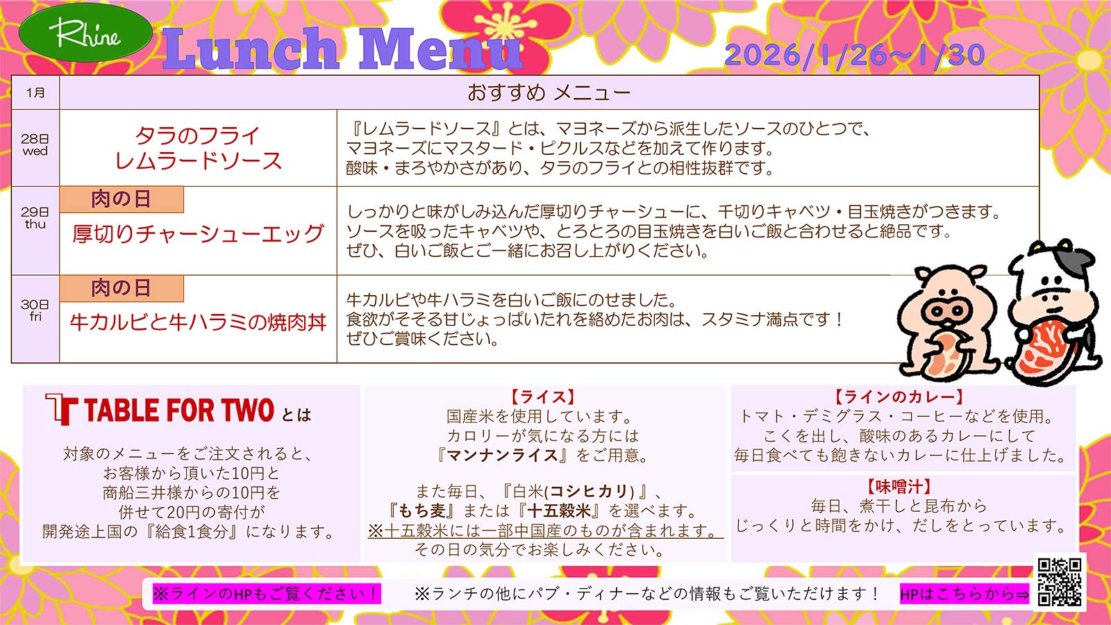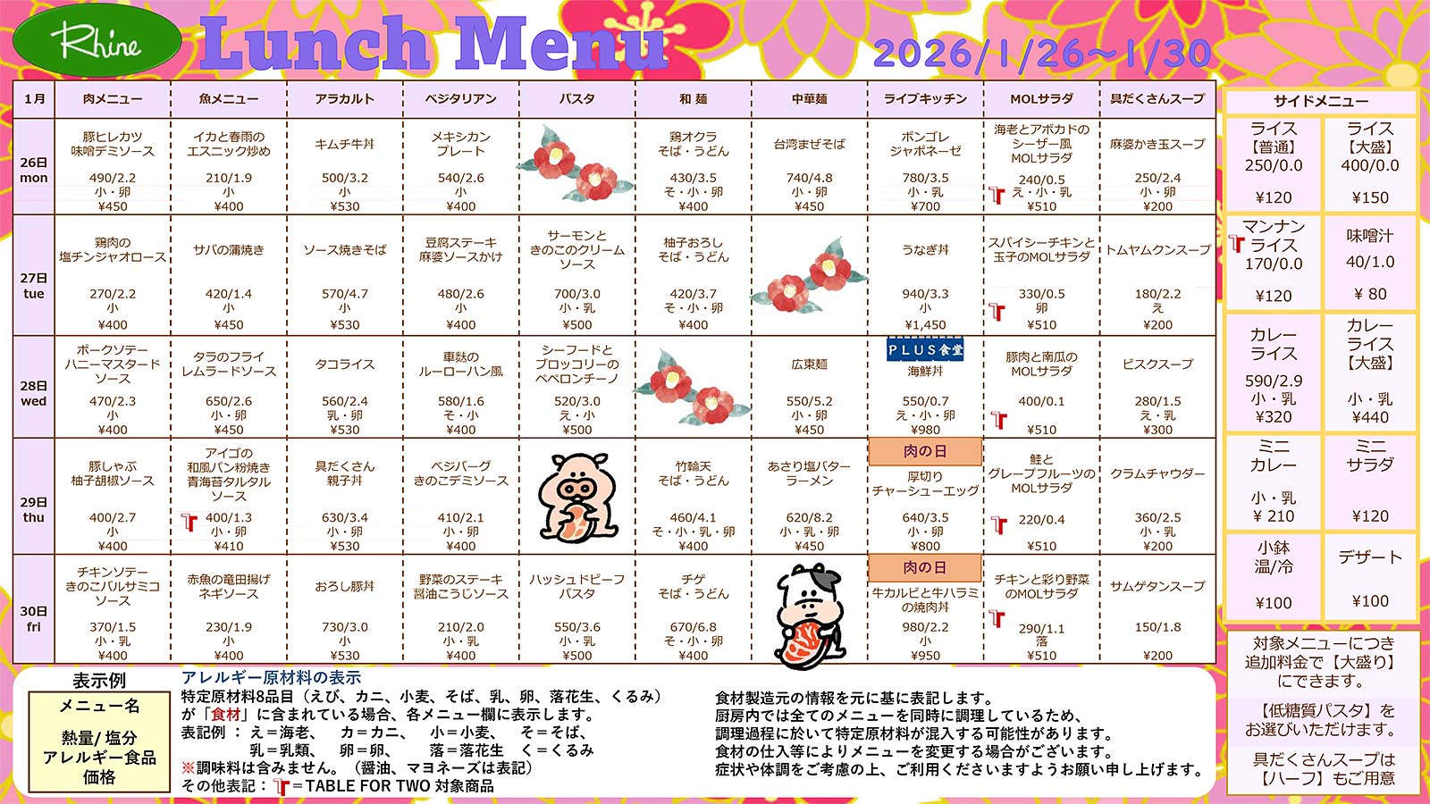 今週のおすすめメニュー 1/26~1/30 (11:30~13:30)