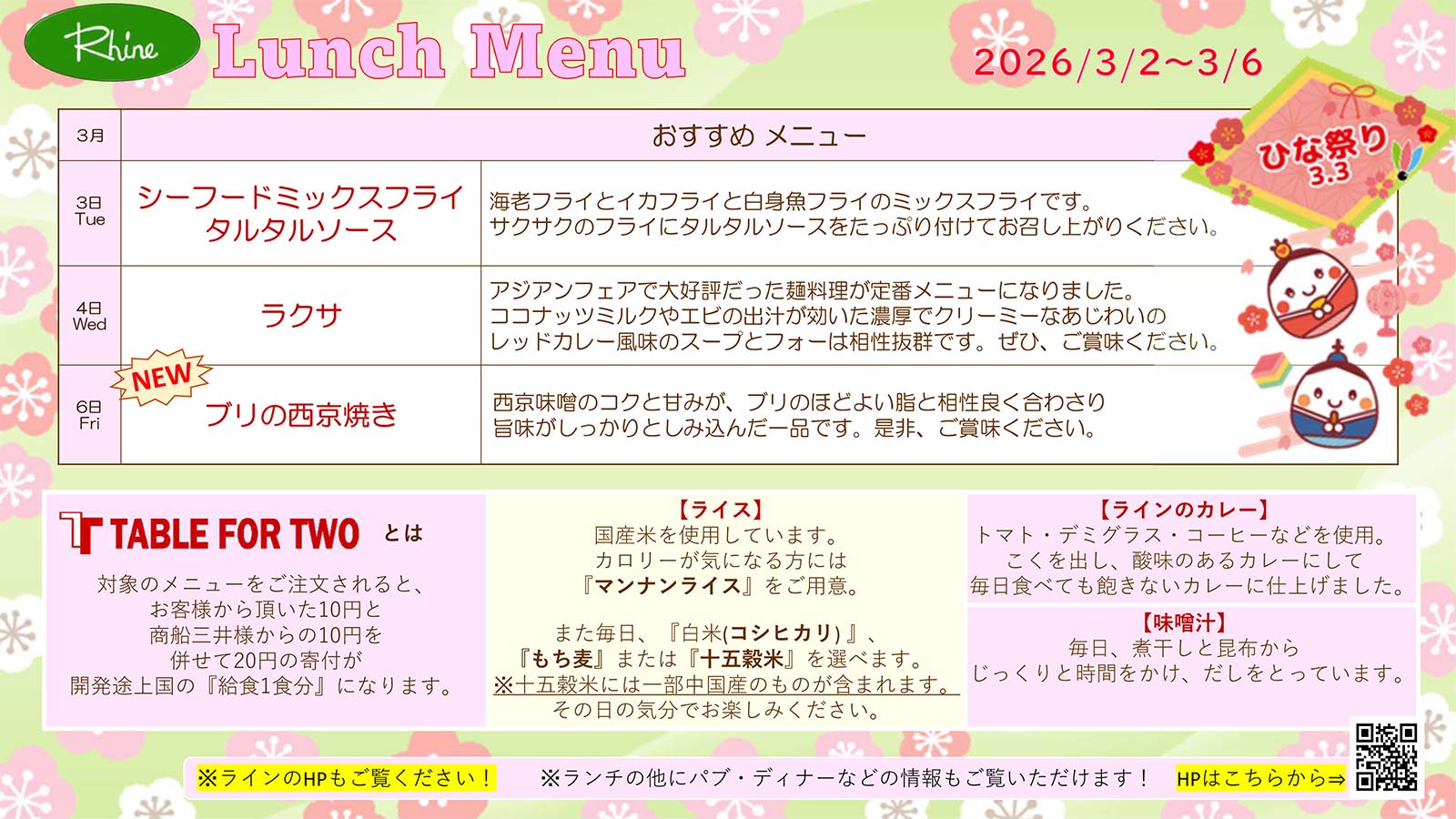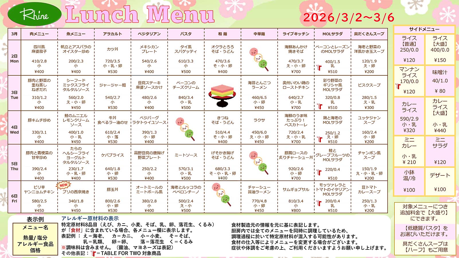 今週のおすすめメニュー 3/2~3/6 (11:30~13:30)