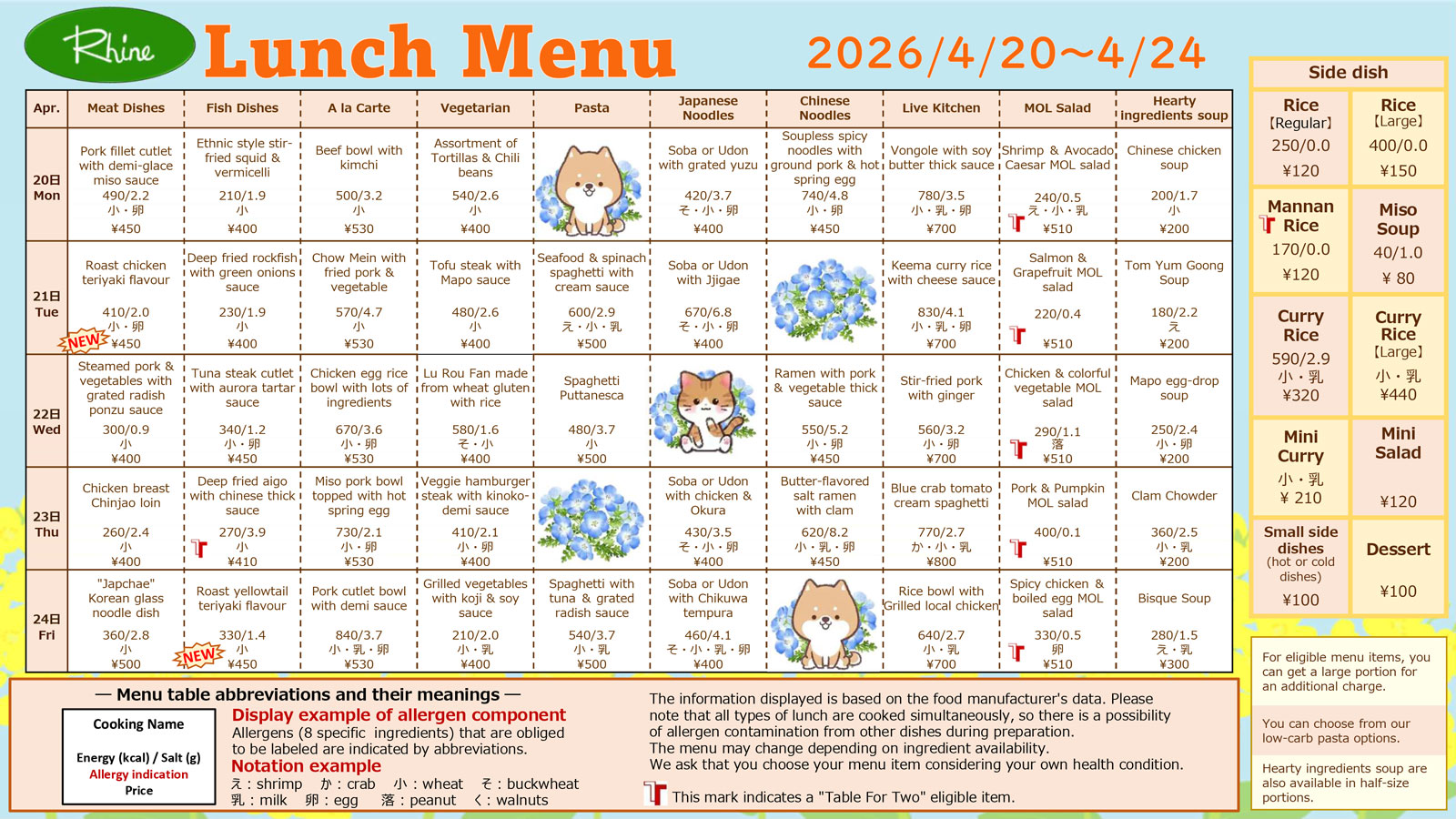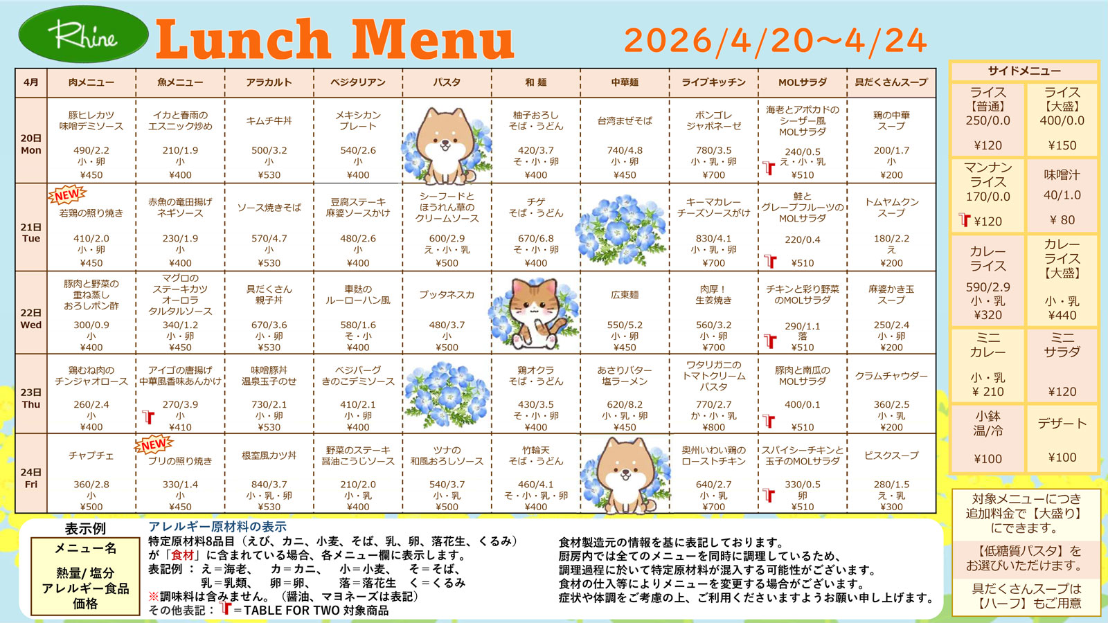 Weekly Lunch Menu 4/20~4/24 (11:30~13:30)