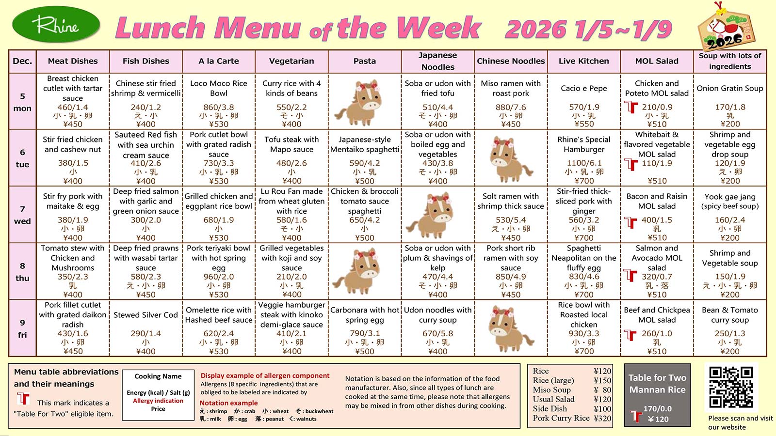 Weekly Lunch Menu 1/5~1/9 (11:30~13:30)
