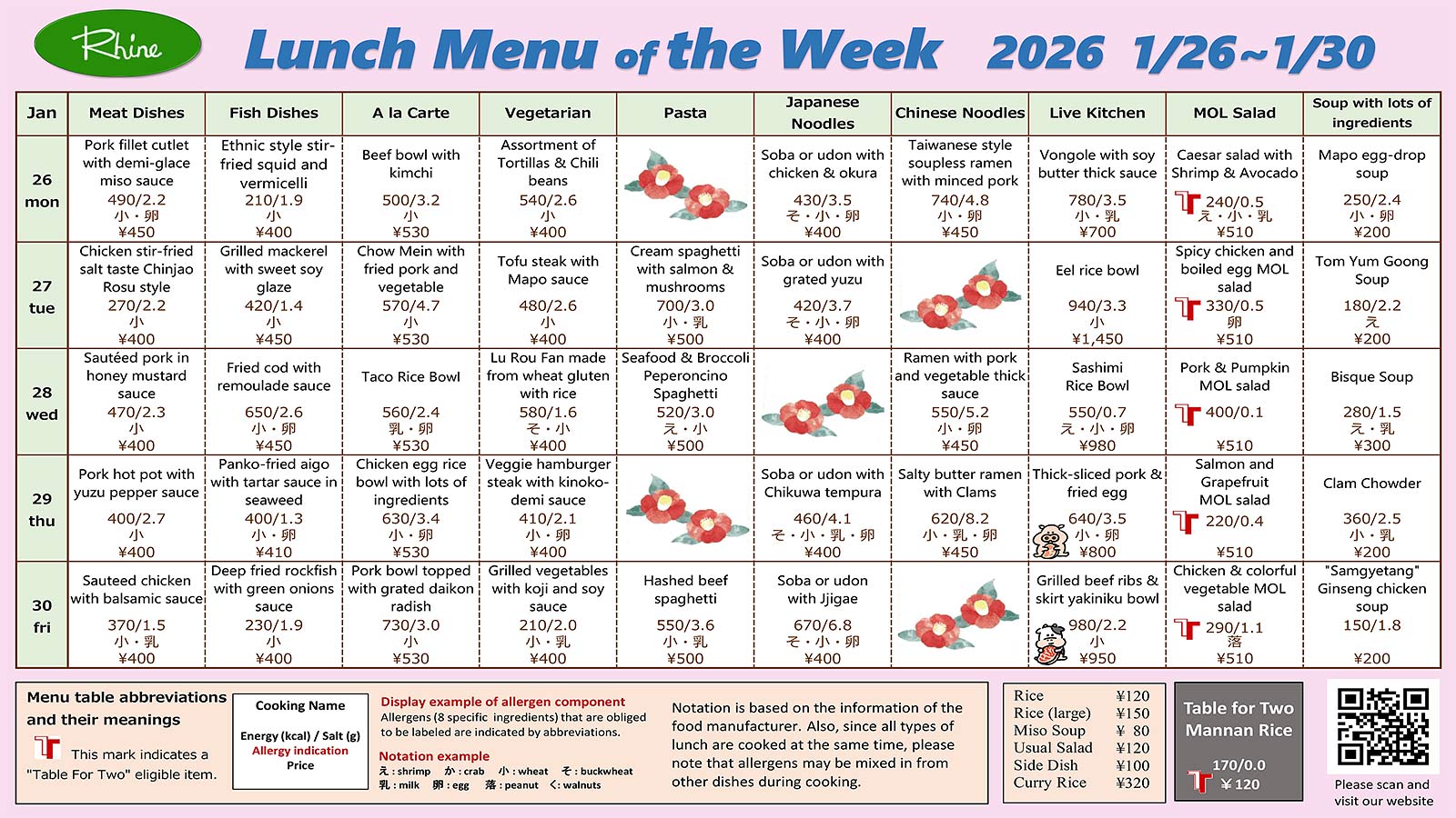 Weekly Lunch Menu 1/26~1/30 (11:30~13:30)
