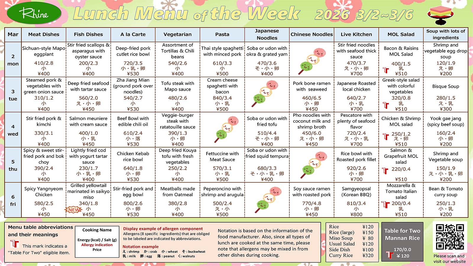 Weekly Lunch Menu 3/2~3/6 (11:30~13:30)