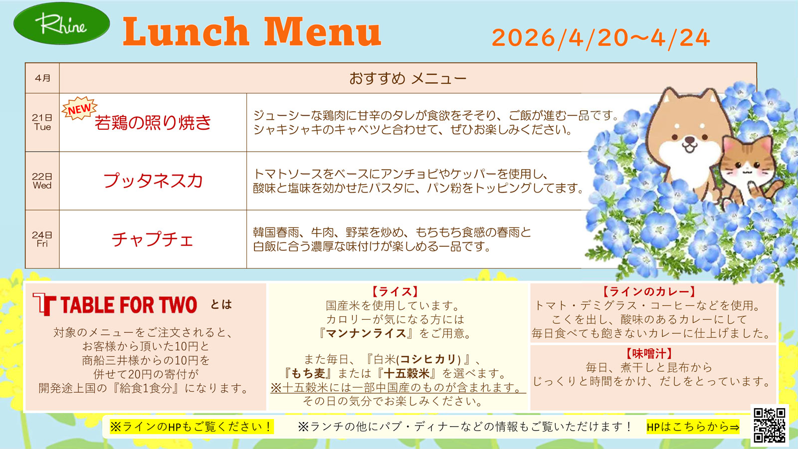 今週のおすすめメニュー 4/20~4/24 (11:30~13:30)
