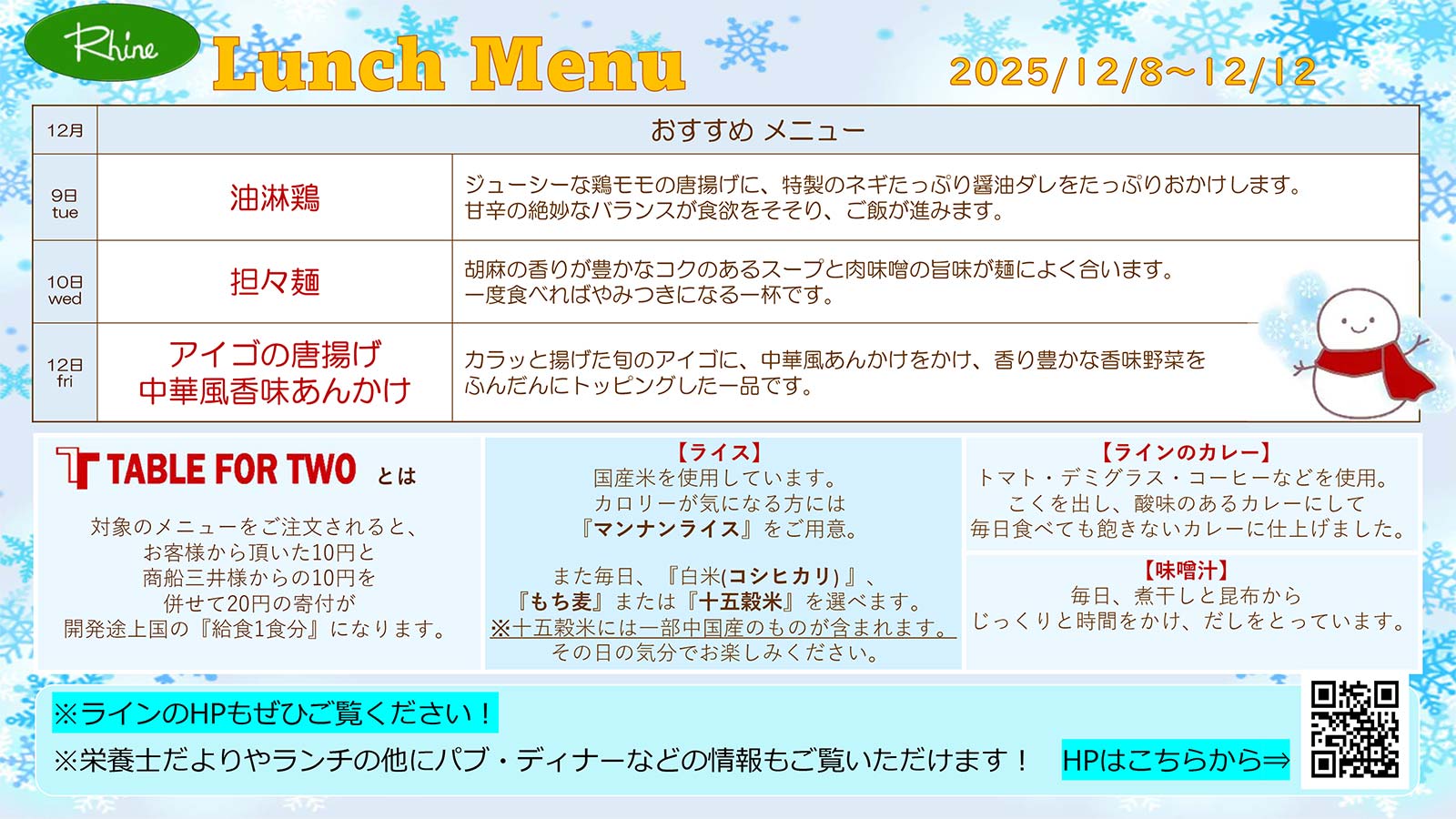 今週のランチメニュー 12/8~12/12