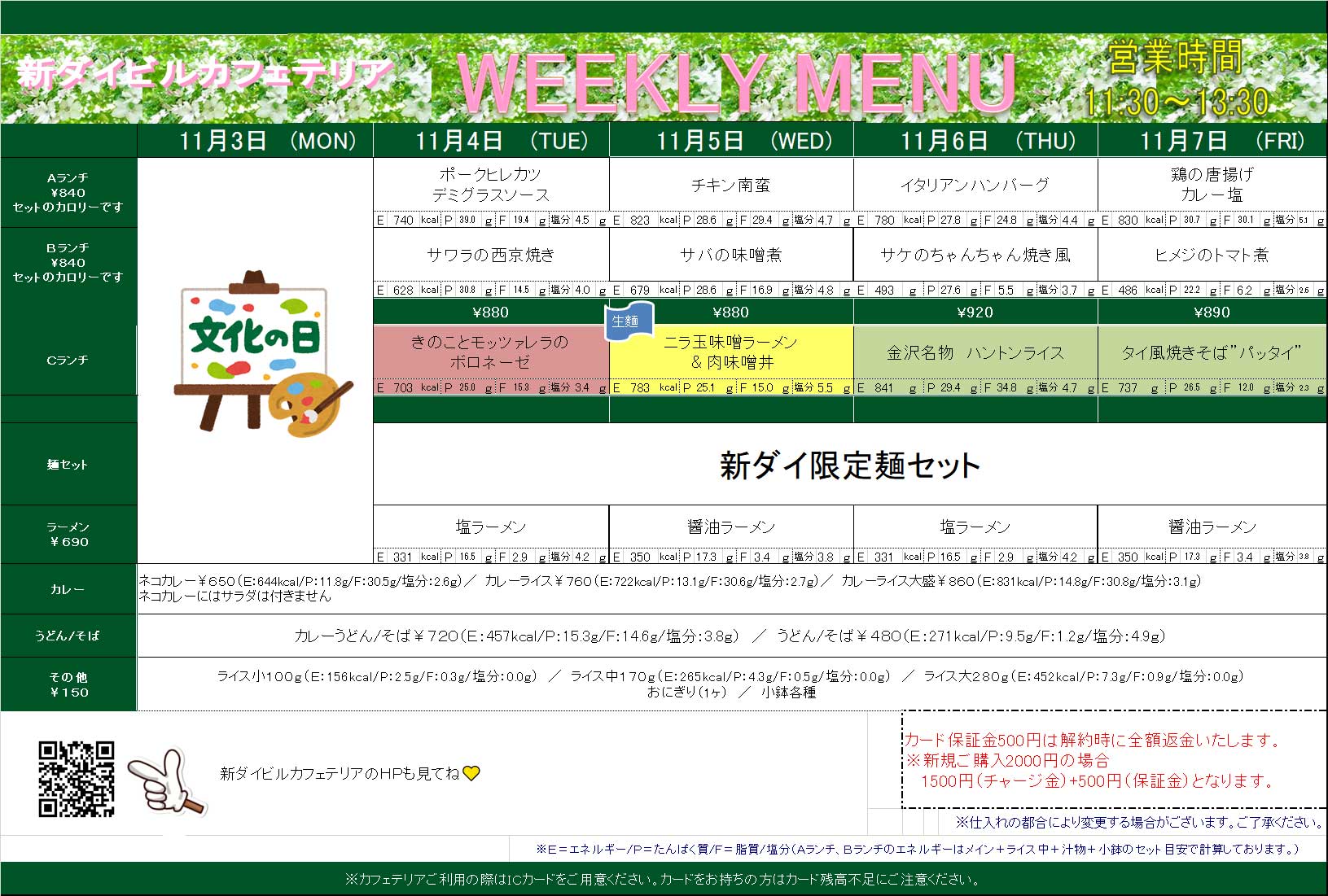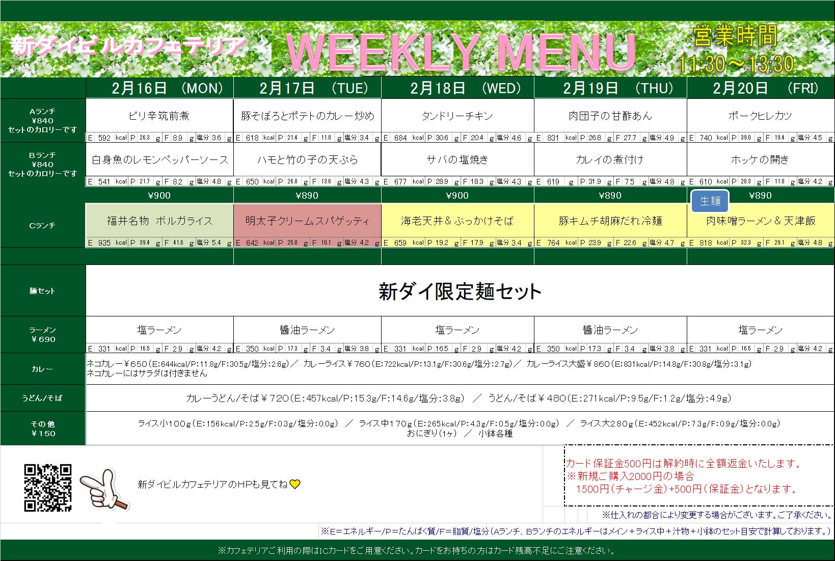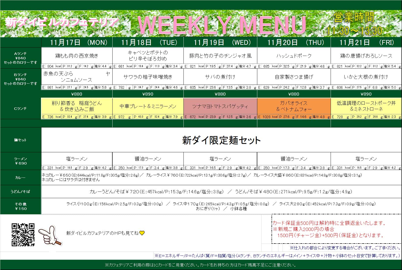 新ダイビルカフェテリアの今週のランチメニューです。美味しいランチを食べてハッピーな一日をお過ごしください。